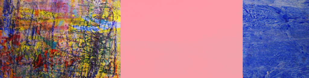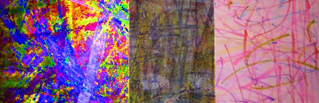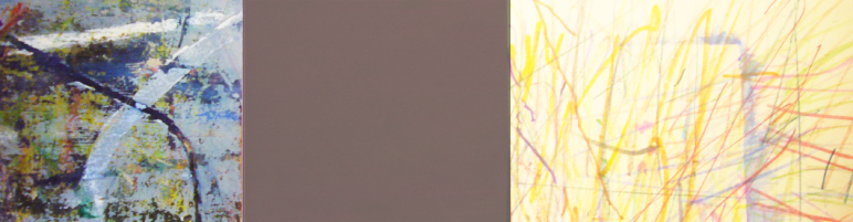 Triptych # 78, Acrylic, gouache, felt marker, watercolour pencil on paper and canvas, 6 in x 17 in ( photographed and photoshop) 18 in x 51 in, 2022