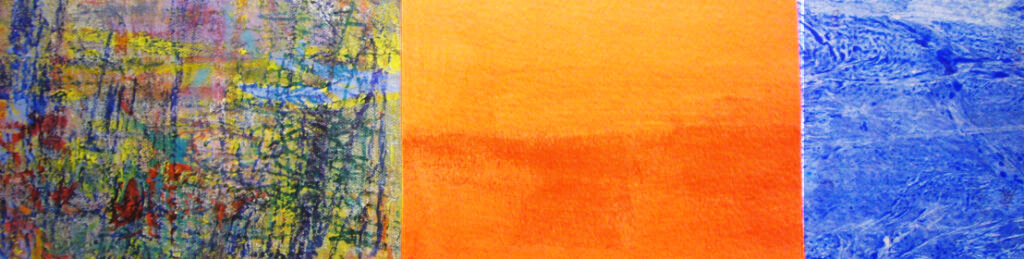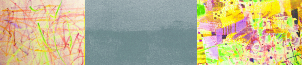 Triptych # 101, Acrylic, gouache, felt marker, watercolour pencil on paper and canvas, 6 in x 17 in ( photographed and photoshop) 18 in x 51 in, 2022