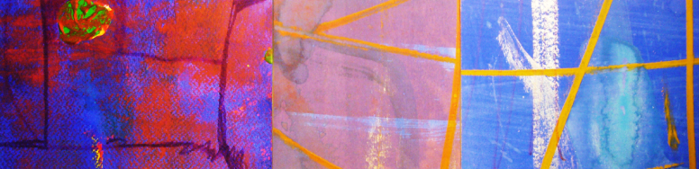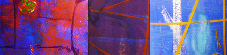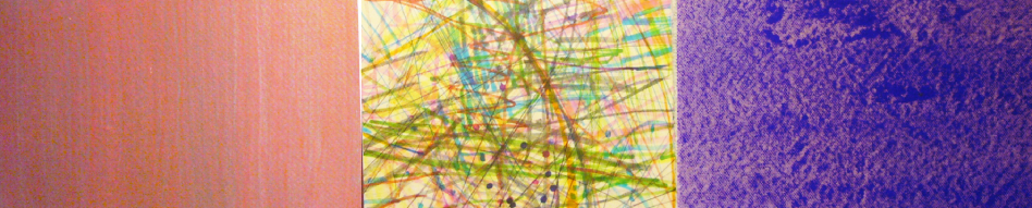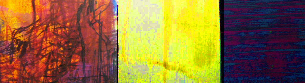 Triptych # 64, Acrylic, gouache, felt marker, watercolour pencil on paper and canvas, 6 in x 17 in ( photographed and photoshop) 18 in x 51 in, 2022