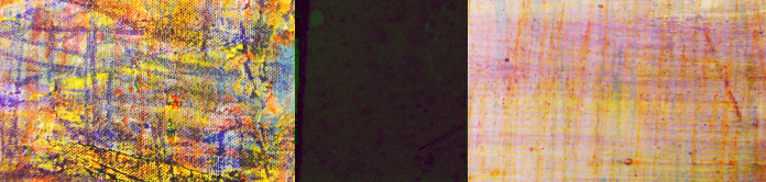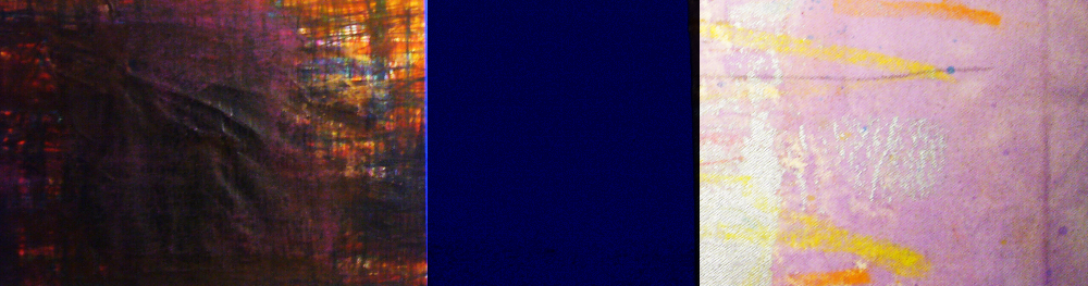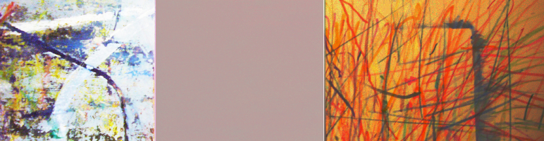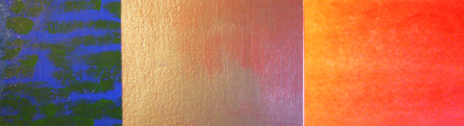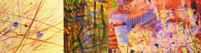 These triptych paintings read as landscapes. I conceptualized the landscapes as energies, shapes, patterns, and colour.Each triptych painting is to be repainted, 8 feet high by 20 feet long, and exhibited in a large room.