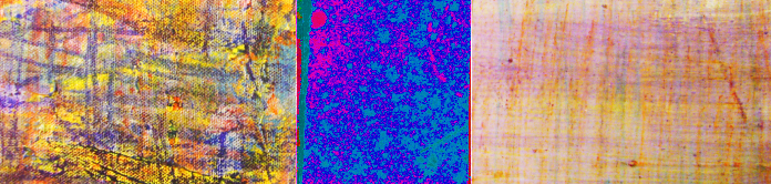Triptych # 52, Acrylic, gouache, felt marker, watercolour pencil on paper and canvas, 6 in x 17 in ( photographed and photoshop) 18 in x 51 in, 2023