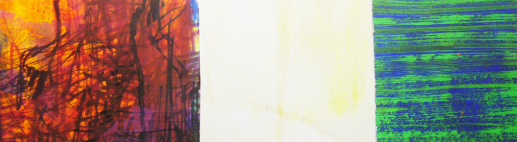Triptych # 12, acrylic, gouache, felt marker on paper, 6 in x 18 in ( photographed and photoshop) 18 in x 54 in, 2022